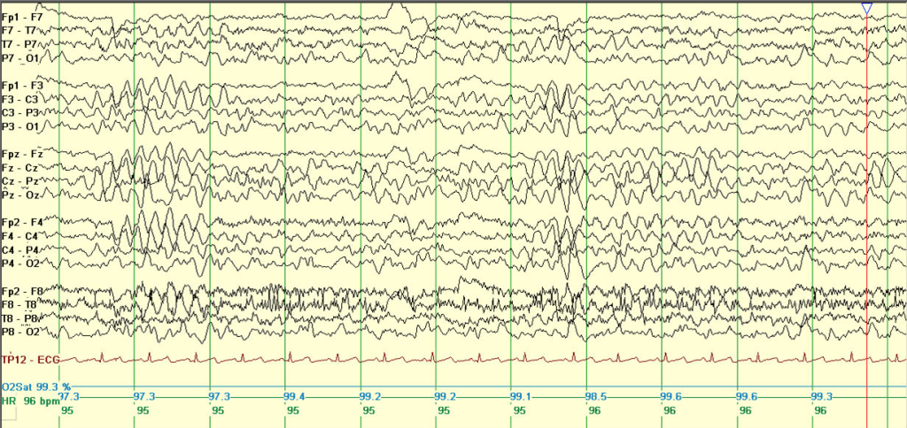 Diagnostic imaging such as MRI and blood tests typically appear normal in EMAtS cases. EEGs often reveal characteristic abnormal brain wave patterns, such as “spike and wave” or “polyspike and wave,” although early EEGs may sometimes appear normal. Genetic testing can support the diagnosis, particularly when variants in the SLC2A1 gene are identified. This gene is linked to glucose transport in the brain, and mutations can cause a deficiency in GLUT1 transporters. Since certain SLC2A1 variants respond well to specific treatments, including dietary interventions, genetic sequencing can play a crucial role in guiding management. In some cases, a lumbar puncture may be used to detect low glucose levels in the spinal fluid, further supporting a diagnosis linked to GLUT1 deficiency.