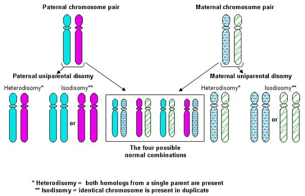 Another 35 percent of cases are due to maternal uniparental disomy, where the individual receives two copies of chromosome 15 from the mother and none from the father. This also results from a random error during development, with a similarly low risk of recurrence.