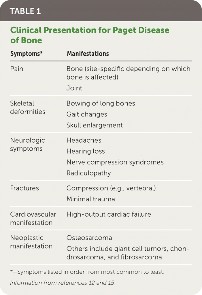 Early signs of Paget’s disease often include bone pain, joint pain in areas like the back, hips and knees, and headaches. Physical changes may involve thickening and bending of the thigh and lower leg bones, as well as an enlarged forehead due to skull growth. Many people with the disease do not show any symptoms or experience only mild discomfort.
