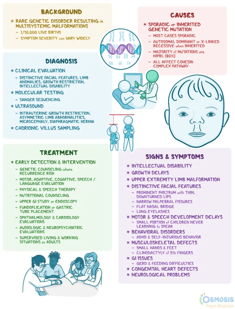 Kline, A. (2023, July 20). Cornelia de Lange Syndrome – Symptoms, Causes, Treatment | NORD. NORD (National Organization for Rare Disorders). https://rarediseases.org/rare-diseases/cornelia-de-lange-syndrome/