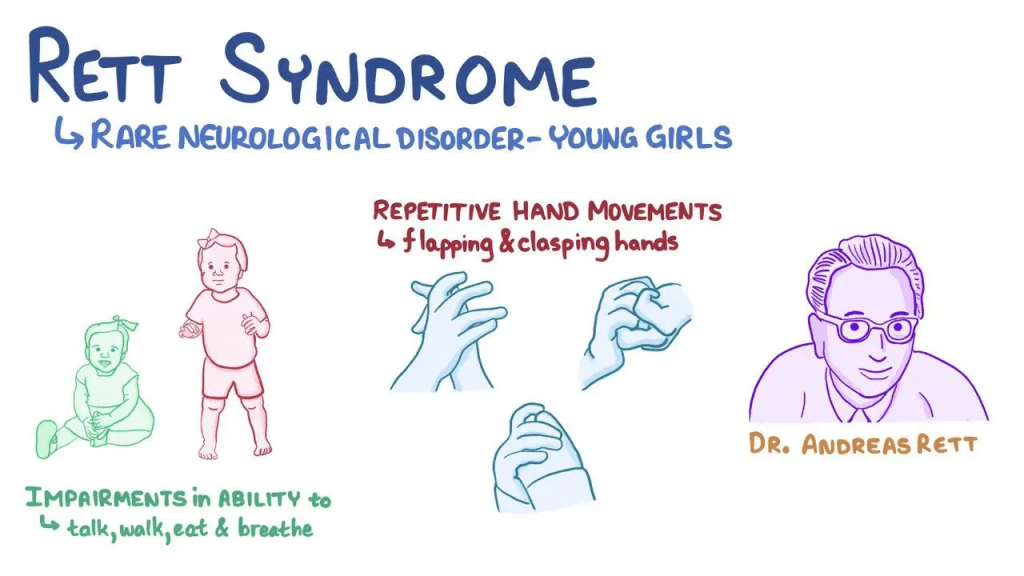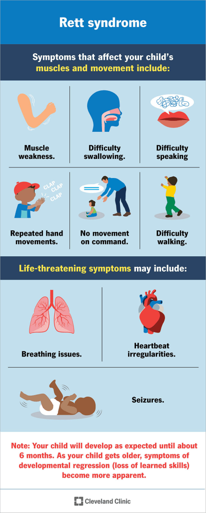Neul, J. L., & Eskind, A. S. (2023, March 15). Rett Syndrome – Symptoms, Causes, Treatment | NORD. NORD (National Organization for Rare Disorders); NORD. https://rarediseases.org/rare-diseases/rett-syndrome/