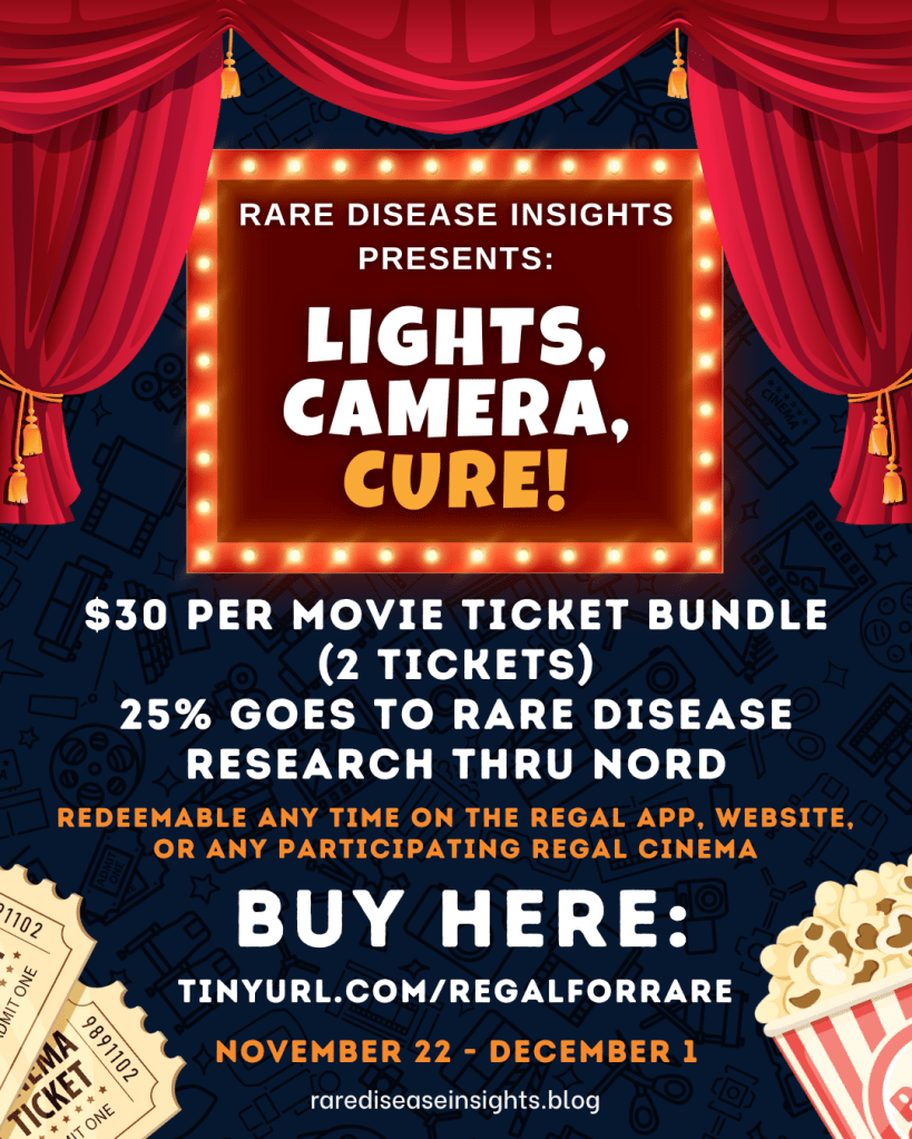 Enjoy a movie night and help advance rare disease research! 25% of every Regal Movie Ticket Bundle goes directly to NORD. Click here.